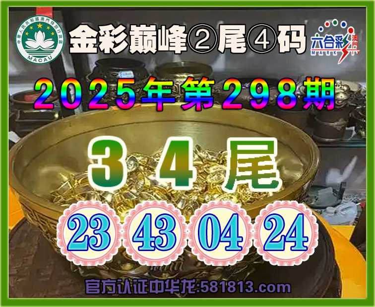 298期:〖金彩巅峰〗 😜②尾④码😜【34尾主:23.43.04.24】开:23准