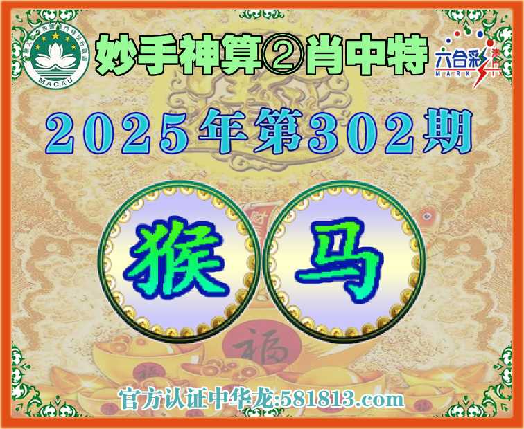 302期:〖妙手神算〗 ✨②肖中特✨【猴.马】开:猴22准